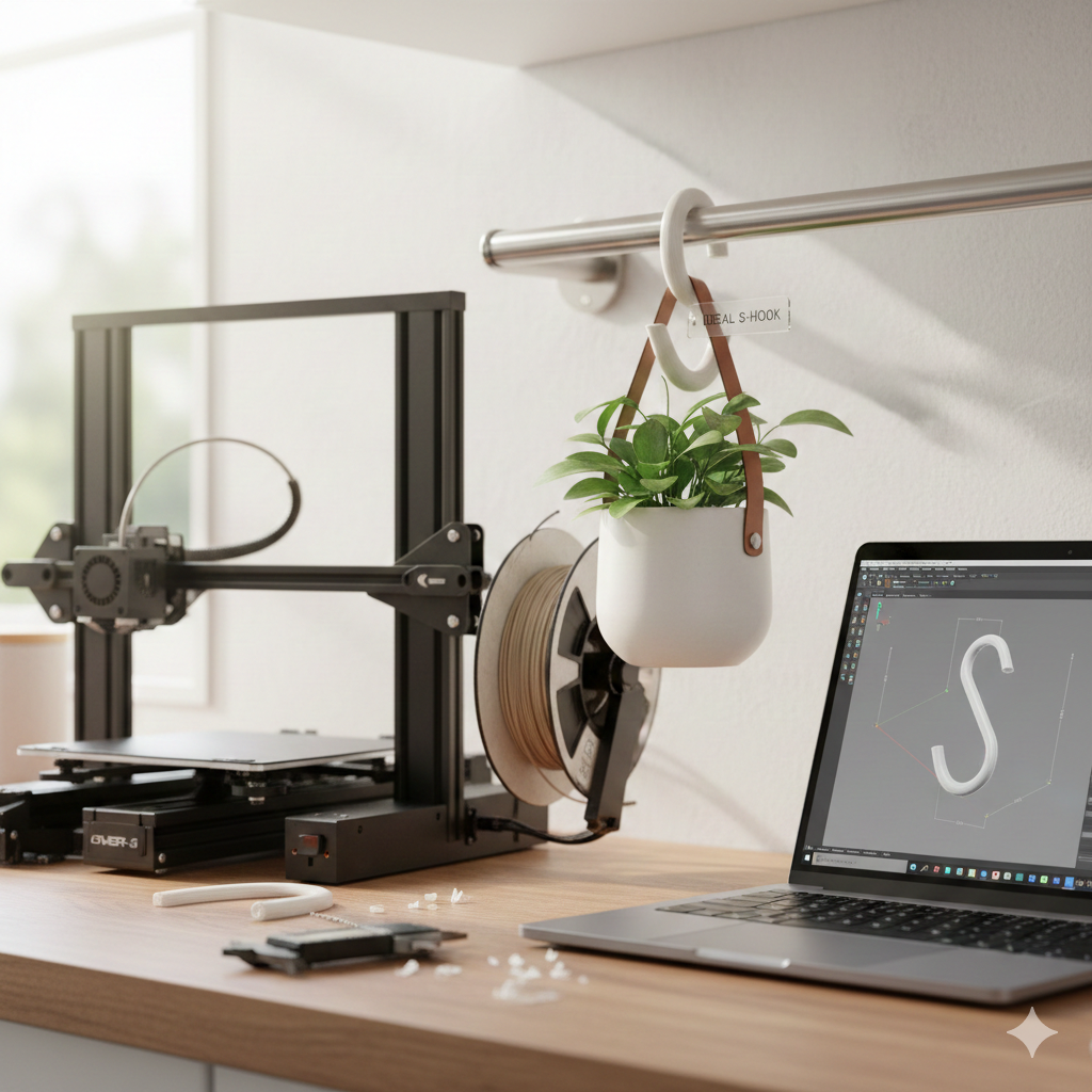 【3Dプリンター】100均に行くのが面倒なので「理想のS字フック」を自作してみた